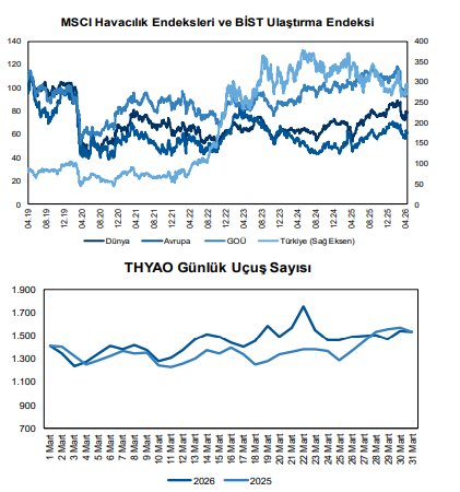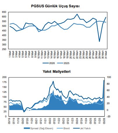 Genel görünümde ise sektörün talep tarafında güçlü kalmaya devam ettiği, özellikle iç hatlar ve kargo segmentinin büyümeyi desteklediği, ancak dış hatlarda jeopolitik riskler ve kapasite kısıtlarının etkisinin sürdüğü ifade edildi. Buna karşın, şirketlerin kapasite yönetimi esnekliği ve bölgesel hat optimizasyonları sayesinde büyüme görünümünün korunduğu ve Mart ayı trafik sonuçlarının genel olarak “sınırlı pozitif” bir tabloya işaret ettiği değerlendirildi.